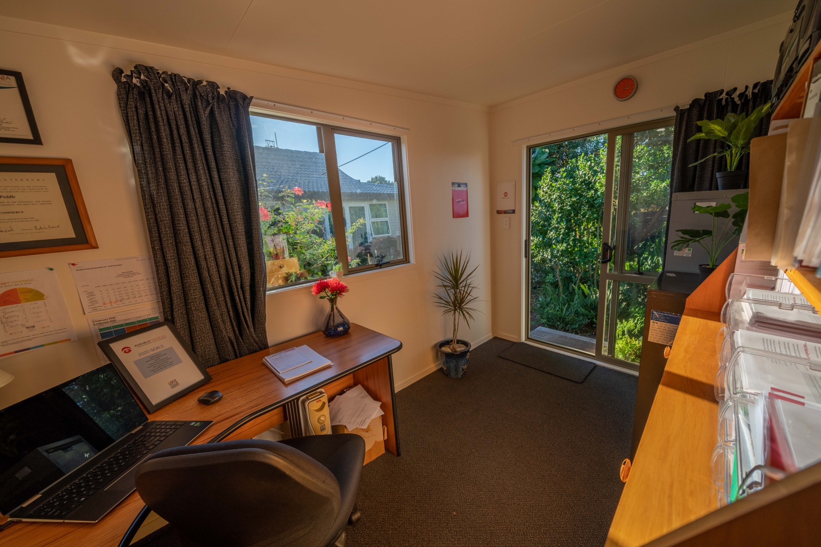 We deliver to your site, position and level the cabin, and assist you in plugging it in to your home’s power. Each cabin is insulated, with carpet and curtains and has multiple power points, so all you need to do is add office furniture.